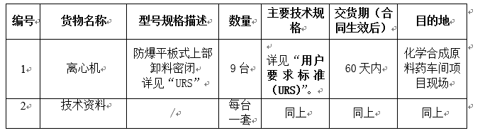 尊龙凯时集团化学合成原料药车间离心机设备采购招标公告