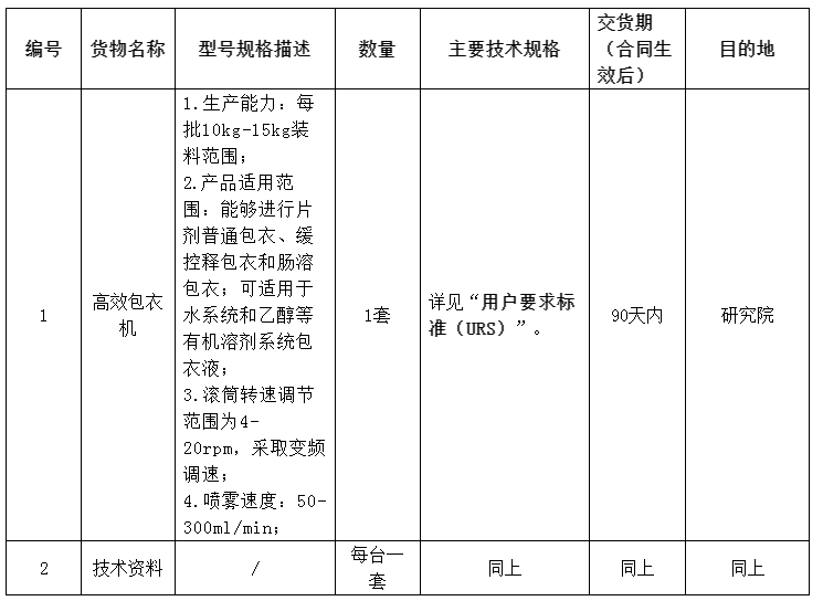 尊龙凯时集团研究院固体口服制剂中试高效包衣机设备采购招标公告