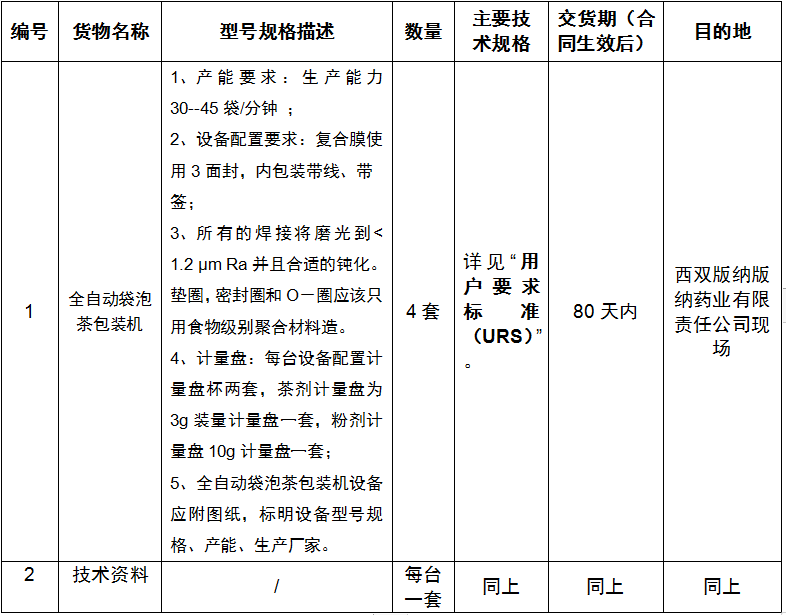 2021年西双版纳版纳药业有限责任公司全自动袋泡茶包装机设备采购项目招标公告